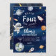 Invitación de cumpleaños número cuatro al espacio