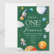Despega hacia una divertida celebración con esta colorida invitación de cumpleaños número uno con tema de espacio exterior. Con ilustraciones divertidas de cohetes, planetas, astronautas y estrellas, este diseño es perfecto para una fiesta de cumpleaños con el tema “Primer viaje alrededor del Sol”.