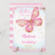 Invitación de cumpleaños número uno con mariposa de acuarela