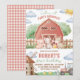 Se invita a todos los animales de la fiesta a celebrar con esta invitación de "Fiesta de Granja". Cuenta con un granero rojo, adorables animales de granja de acuarela y un tractor. Perfecto para el primer cumpleaños de un niño con tema de corral. Fácilmente personalizable con el nombre de su hijo y los detalles del evento.