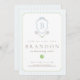 ¡Celebra el primer cumpleaños de tu bebé en estilo deportivo y elegante! Esta invitación de tenis azul presenta raquetas de acuarela, un escudo personalizado y un diseño atemporal, ideal para una encantadora fiesta de “primer partido”.