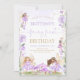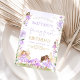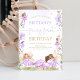 Celebra el mágico cumpleaños de tu pequeño con esta encantadora invitación de cumpleaños de hada con flores silvestres moradas. Con delicadas flores de acuarela y la silueta de una hada caprichosa, este diseño crea una atmósfera de jardín soñador para tu celebración especial. La elegante letra y los tonos suaves de lavanda la hacen perfecta para una fiesta con tema de bosque o cuento de hadas. Personaliza fácilmente todos los detalles para invitar a amigos y familiares a un evento verdaderamente "maravilloso".