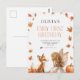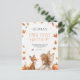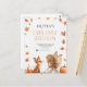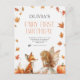 Invitación al primer cumpleaños de la hada de otoño con un zorro y una pixie con alas y hojas de otoño y calabazas