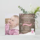 Invitación de cumpleaños número uno de Invierno Rústico Onederland con Oso Polar con foto personalizada. Ciervo. Copo de nieve rosa y blanco. Primera Cumpleaños. Invitación de cumpleaños para niña. Fondo de madera rústica. Para una mayor personalización, haga clic en el botón "Personalizar" y use nuestra herramienta de diseño para modificar esta plantilla.