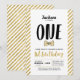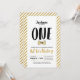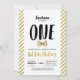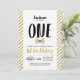 ¡Celebra un día especial con esta moderna invitación de cumpleaños número uno dorada y negra! Este diseño presenta un gráfico de corbatín adorable y tipografía con brillo dorado.