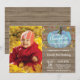 Invitación de cumpleaños número uno de niño rústico con foto personalizada. Azul. Hojas de calabaza de acuarela. Invitación de fiesta de cumpleaños de niño. Fondo de madera rústica. País Vintage Retro. 1º 2º 3º 4º 5º 6º 7º 8º 9º 10º, cualquier edad. Para una mayor personalización, haga clic en el botón "Personalizar" y use nuestra herramienta de diseño para modificar esta plantilla.