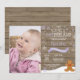 Invitación de cumpleaños número uno de Onederland de invierno rústico con muñeco de nieve con foto personalizada. Hombre de pan de jengibre. Lila púrpura lavanda y copo de nieve blanco. Primera cumpleaños. Invitación de cumpleaños número uno para niña. Fondo de madera rústica. Para una personalización adicional, haga clic en el botón "Personalizar" y use nuestra herramienta de diseño para modificar esta plantilla.