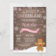 Invitación de cumpleaños número uno de Onederland de invierno rústico con muñeco de nieve. Hombre de pan de jengibre. Copo de nieve rosa y blanco. Primera invitación de cumpleaños. Invitación de cumpleaños número uno para niña. Fondo de madera rústica. Para una mayor personalización, haga clic en el botón "Personalízalo" y utilice nuestra herramienta de diseño para modificar esta plantilla.