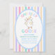 Celebra el primer cumpleaños de tu pequeño con esta adorable invitación "Un Ganso Tonto". Con encantadoras franjas pastel y un ganso acuarela adorable, esta plantilla es fácil de personalizar con la foto de tu hijo. ¡Perfecta para una celebración de cumpleaños caprichosa y divertida!