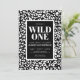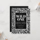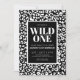 Invitación de cumpleaños número uno para una fiesta de safari en la jungla. Una toma chic y elegante del tema de cumpleaños número uno "Wild ONE". Un patrón elegante y sofisticado de estampado de leopardo en blanco y negro (o guepardo) es perfecto para una niña o un niño porque es neutro en cuanto al género. De hecho, puedes cambiar todos los colores de esta invitación, incluyendo el patrón de estampado de animal. Así que ya sea que vayas por un tema de safari o jungla, o una versión de moda de esta tendencia, puedes personalizar esta invitación para hacerla tuya. Con una mezcla de fuentes simples y atrevidas.