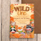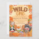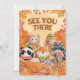 La temporada de otoño se acerca, celebra el primer cumpleaños con esta invitación única de los bosques. Los animales adorables se enfatizan en el diseño con hojas de otoño y árboles en el fondo para capturar la temporada de enfriamiento del año