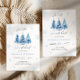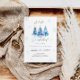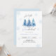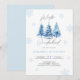 Invitación de cumpleaños número uno con un árbol de Navidad azul de acuarela adorable con el texto "invierno ONEderland".