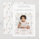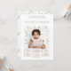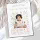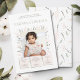 ¡Celebre el primer año de su pequeño con un toque de elegancia y encanto! Esta hermosa invitación de primer cumpleaños presenta un delicado marco de suaves pétalos rosados pálidos y suaves hojas verdes pálidas, que abrazan perfectamente una preciada foto de su dulce cumpleañera.