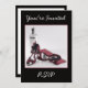Una bonita invitación que muestra una fotografía de zapatos fiestas y un ostentoso cóctel. Otras invitaciones por mí-