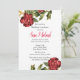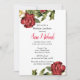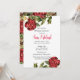 Utilice esta invitación de fiesta botánica para sus necesidades personales o de negocios. Esta invitación presenta un diseño de rosa vintage roja en la parte superior e inferior. Un diseño floral elegante para una invitación de cumpleaños para ella.
