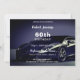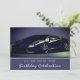 Elegante y divertida invitación a la fiesta de cumpleaños del coche deportivo rápido. El texto se puede personalizar para cualquier año de cumpleaños.