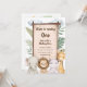 Celebra tu día especial con esta deliciosa invitación de cumpleaños a Safari Adventure. Con encantadores animales de bebé dibujados a mano y un frondoso follaje de jungla, esta invitación marca el tono perfecto para una fiesta de cumpleaños llena de diversión. La parte delantera de la tarjeta muestra una cartelera de madera donde puede personalizar todo el texto, incluyendo el nombre, edad, mensaje fiesta y dirección de su hijo. Animales bebés adorables, entre ellos un elefante gentil, un león simpático, un hipopótamo tierno y una jirafa alta y sonriente, rodean el cartel, añadiendo un toque de capricho al diseño. El dorso de la carta continúa con el tema del safari con dos personajes más lindos —un mono juguetón y una cebra alegre. Una estrella de tiro añade un toque mágico sobre el área de texto, que también es personalizable para cualquier mensaje o detalle adicional que desee incluir. Esta invitación es perfecta para crear memorables y personalizadas celebraciones de cumpleaños que sus invitados adorarán.