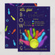Esta invitación de cumpleaños para bolos con tema de brillo vibrante presenta una estética audaz de arcade retro, perfecta para niños y adolescentes que aman los colores brillantes y los diseños divertidos y enérgicos. El diseño muestra un titular de letra neón brillante (“vamos a brillar”), combinado con letras de estilo marquesina punteadas para un aspecto divertido y moderno.