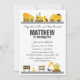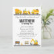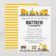 Invitación de cumpleaños para camiones de vehículos de construcción para una fiesta divertida.