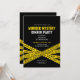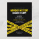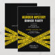 Invitación de cumpleaños para fiesta de misterio de asesinato con diseño de cinta policial contemporánea. Diseño blanco y amarillo.