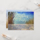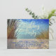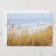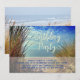 Plantilla de invitación de cumpleaños de dunas de playa para hombres o mujeres que aman el océano. Personalice el texto en dos lugares con letra grande en la parte superior - muestra, “Fiesta de Cumpleaños”, y texto impreso en azul en la parte inferior. El diseño es una foto de playa con un camino arenoso entre las dunas de hierba que conducen a un mar en calma. La parte posterior también tiene una imagen de dunas marinas.