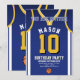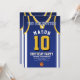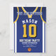Celebra tu día especial con esta invitación de cumpleaños de Jersey de Baloncesto, diseñada para los verdaderos fans del baloncesto. Con un diseño jersey audaz inspirado en los icónicos colores morado y dorado, esta invitación es perfecta para niños, adolescentes y adultos que aman el juego. Personalízalo fácilmente con tu nombre, edad, detalles del fiesta e incluso número de equipo en sólo unos cuantos clics. Disponible en varios tamaños, impreso en papel de calidad superior con una amplia gama de acabados para coincidir con tu estilo. Elija entre diferentes tipos de papel, impresión rápida y envío rápido para que sus invitaciones lleguen a tiempo. Ya sea para un fiesta de temática deportiva o para una celebración de fans de Lakers, esta invitación es la manera perfecta de emocionar a sus invitados.