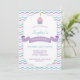 Invitación de cumpleaños con la temática de la torta cúrcuma en un decorado de color violeta y turquesa, con un ilustracion de quequitos y un fondo de estilo de chevron. Perfecto para una pastelería o un pastelito decorando el fiesta temático, y para fiestas de cumpleaños en general.