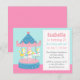 Invita a tus invitados al cumpleaños de tu hija con esta adorable invitación de cumpleaños de casa de carrusel rosa y azul. El colorido carrusel pequeño tiene caballos blancos, estrellas y cielo. Dulce y adorable para una fiesta con tema de circo o carnaval. ¡Tus invitados niños estarán emocionados de recibir la invitación! Personaliza fácilmente con los detalles de tu fiesta.