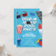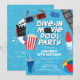 Invitación de fiesta de piscina y película Dive-In personalizable para cualquier edad o evento de cumpleaños. ¡Hace una gran fiesta de cumpleaños de verano, fiesta de fin de temporada deportiva o simplemente por diversión! El diseño presenta todas las cosas que verías en una película de drive-in y fiesta en la piscina: película de cine, boletos, agua de piscina, palomitas de maíz, refresco, helado, paletas, pelota de playa y refresco - ¡todo muy divertido! El diseño continúa en la parte posterior.