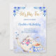 Invitación de cumpleaños para fiesta de té azul y rosa