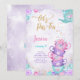 Invitación de cumpleaños para fiesta de té púrpura y rosa