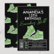 Esta invitación de cumpleaños para fiesta de zapatillas verdes es perfecta para todos los cumpleaños. Un tema de fiesta de zapatillas es muy popular para fiestas de sweet 16 y swag 16.
