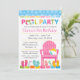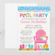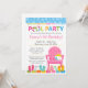 Invitación de cumpleaños para fiesta en la piscina en rosa, verde y azul