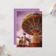Imagen de un juego de columpios en un parque de diversiones en la parte frontal. Detalles de la fiesta en la parte trasera.