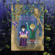 Arte de novela gráfica morada, azul y verde para un jubileo de intercambio de libros. Hermoso búho de granero y mariposas en un bosque brumoso con personajes amistosos explorando una historia mágica. Perfecto para una fiesta de intercambio de libros, o personalízalo para decir Feliz Cumpleaños a un gusano de libros. Perfecto para colores temáticos púrpura, violeta y azul. Versátil para una fiesta de cumpleaños de niña, fiesta de 40 o 50 cumpleaños, ¡y más!