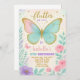 Deleite a sus invitados con esta soñadora invitación de cumpleaños para jardín de mariposas, diseñada en suaves pasteles de acuarela y acentos florales caprichosos. Totalmente editable y fácil de personalizar, esta invitación es perfecta para una fiesta de cumpleaños de niña con tema de jardín, primavera o hadas. Personalice todo el texto directamente en su navegador, sin necesidad de software o descargas.