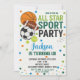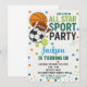 ¡Celebra tu pequeña estrella con esta invitación de cumpleaños deportiva repleta de acción! Con coloridos ilustraciones de fútbol, fútbol, béisbol y baloncesto, este divertido y enérgico diseño es perfecto para los niños amantes del deporte. Personalice con el nombre, edad y detalles del fiesta de su hijo para crear una invitación única que desencadene la emoción. Ideal para niños, chicas y fiestas deportivos mixtos. Impreso en papel de alta calidad y entregado rápidamente - esta invitación es una elección ganadora para los padres que planean una celebración deportiva!