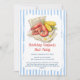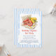 Haz su cumpleaños inolvidable con una festiva cacerola de mariscos. Esta invitación de cumpleaños combina rayas rústicas e ilustraciones de mariscos en acuarela para un ambiente divertido y costero. Personaliza con el nombre y la edad del homenajeado. Ideal para cumpleaños, fiestas familiares o celebraciones junto al mar.