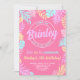 Una divertida invitación rosa y brillante, edita el texto para que se adapte al tema de tu fiesta de muñecas. ¡Vamos, vamos a la fiesta! Muñeca clásica de Malibu.