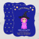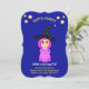 Invitación de cumpleaños de niña linda con patrón de estrellas sobre fondo azul real en el reverso. Ideal para celebraciones de cumpleaños y Halloween. Todos los textos y números están listos para ser personalizados.