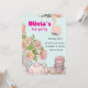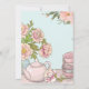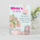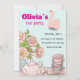 Organiza una encantadora celebración con esta caprichosa invitación de cumpleaños para una fiesta de té de dinosaurios, perfecta para niñas que aman los dinosaurios y el té con disfraz. Con un dinosaurio rosa pastel con un lazo adorable, flores delicadas de acuarela, tazas de té apiladas y un dulce juego de té, este diseño combina la diversión prehistórica con la elegancia de una fiesta de té.
