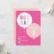 Esta invitación moderna de cumpleaños para niños presenta un ramo de globos con un tipo HOORAY festivo en rosa y morado. El tipo personalizable en blanco y los detalles de la edad dentro del globo lo hacen divertido, mientras que sigue siendo moderno y fresco. La paleta de colores rosa y morado la hace perfecta para una fiesta de cumpleaños de niñas. Respaldo de color coordinado. Se pueden encontrar artículos adicionales para la fiesta, como sellos, notas de agradecimiento y decoraciones para la fiesta, en las colecciones Balloon bunch de Stacey Meacham.