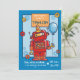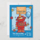 Celebra el cumpleaños de tu hijo con esta divertida y colorida invitación temática robot. Este diseño presenta un lindo robot con un gorra fiesta y globos, junto con un área de texto de personalizable donde se pueden añadir sus propios detalles. Tanto si a tu hijo le gusta la ciencia, la tecnología o sólo los robots, esta invitación seguramente los hará sonreír.