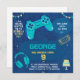 Invitación de cumpleaños para niños de videojuegos azul genial para niños