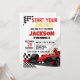 ¡Arranque sus motores! Celebra el gran día de su hijo con esta atrevida y emocionante invitación de cumpleaños a un coche de carrera, diseñada especialmente para pequeños aceleradores. Con vibrantes autos de carreras rojos y azules, banderas a cuadros y elementos de diseño de alta energía, esta invitación marca el tono para una divertida fiesta de cumpleaños con temática de carreras. Perfecto para los niños que aman los coches, las pistas y la diversión rápida, esta invitación de 5"x7" totalmente personalizable facilita añadir los detalles de su fiesta con sólo unos cuantos clics. Ya sea que esté organizando un Grand Prix de patio trasero o una celebración de carreras cubiertas, esta invitación trae la emoción de la pista a cada buzón.