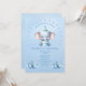 ¡Celebra tu primer cumpleaños con esta adorable invitación azul a los elefantes! Con un lindo elefante de bebé que sostiene una torta de cumpleaños rodeada de detalles azul pastel, esta carta se encuentra en un suave fondo azul pastel, creando un ambiente encantador y alegre. La parte trasera está decorada con un juego de puntos azules que le confieren un encanto especial. Perfecto para el día especial de tu niñito o chica, esta invitación es una manera deliciosa de invitar a los seres queridos a la celebración. ¡Haz que tu cumpleaños sea verdaderamente memorable!