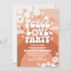 Celebra con estilo con esta invitación de cumpleaños infantil floral retro que presenta margaritas juguetonas, arcoíris, signos de paz y mariposas. Perfecta para un tema de fiesta groovy, este diseño combina la nostalgia de los 70 con encanto moderno. La tipografía audaz y los colores pastel alegres la convierten en un divertido recuerdo para los invitados mientras establecen el tono para una celebración alegre. Ideal para cumpleaños de niños, especialmente aquellos que aman los diseños coloridos e inspirados en hippies.