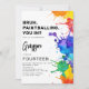 Inicia una fiesta inolvidable con nuestras invitaciones de cumpleaños de paintball para niños. Con un fondo blanco adornado con salpicaduras de pintura de colores vibrantes, estas invitaciones marcan el tono para una fiesta salvaje y divertida, perfecta para preadolescentes y adolescentes. Comienza a planificar un evento que nunca olvidarán con nuestras invitaciones temáticas de paintball de moda.