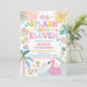 Haz un gran impacto con esta vibrante invitación de cumpleaños para una fiesta tropical en la piscina, perfecta para celebraciones de verano. Con ilustraciones divertidas de flotadores de flamencos y cisnes, piñas, rodajas de sandía, gafas de sol y flores tropicales, establece el tono para un día lleno de diversión. Este diseño alegre es ideal para cumpleaños de niños, fiestas en la piscina o reuniones de verano, y aporta un ambiente colorido y festivo a tu evento. Personalízalo fácilmente con los detalles de la fiesta e impresiona a tus invitados con una invitación elegante y llamativa.
