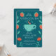 Invitación de cumpleaños con ilustración abstracta de flores y té, que incluye una ilustración de una taza de té y delicados patrones florales. Perfecta para celebrar un cumpleaños a cualquier edad, este diseño versátil añade un toque encantador y atemporal a tu día especial.